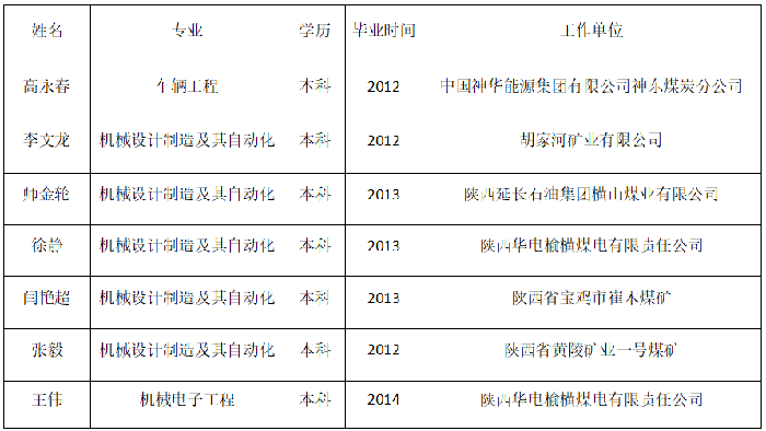 日前,中国煤炭教育协会公布2017年度煤炭优秀毕业生评选结果,机械工程学院毕业生李文龙等7名毕业生被评为“全国煤矿建功立业优秀毕业生”。自中国煤炭教育协会开展2017年煤炭优秀毕业生评选活动以来,机械学院根据评选要求,积极部署,深入煤矿一线走访煤矿行业的校友,认真做好选拔上报工作,确保了评选工作顺利进行。