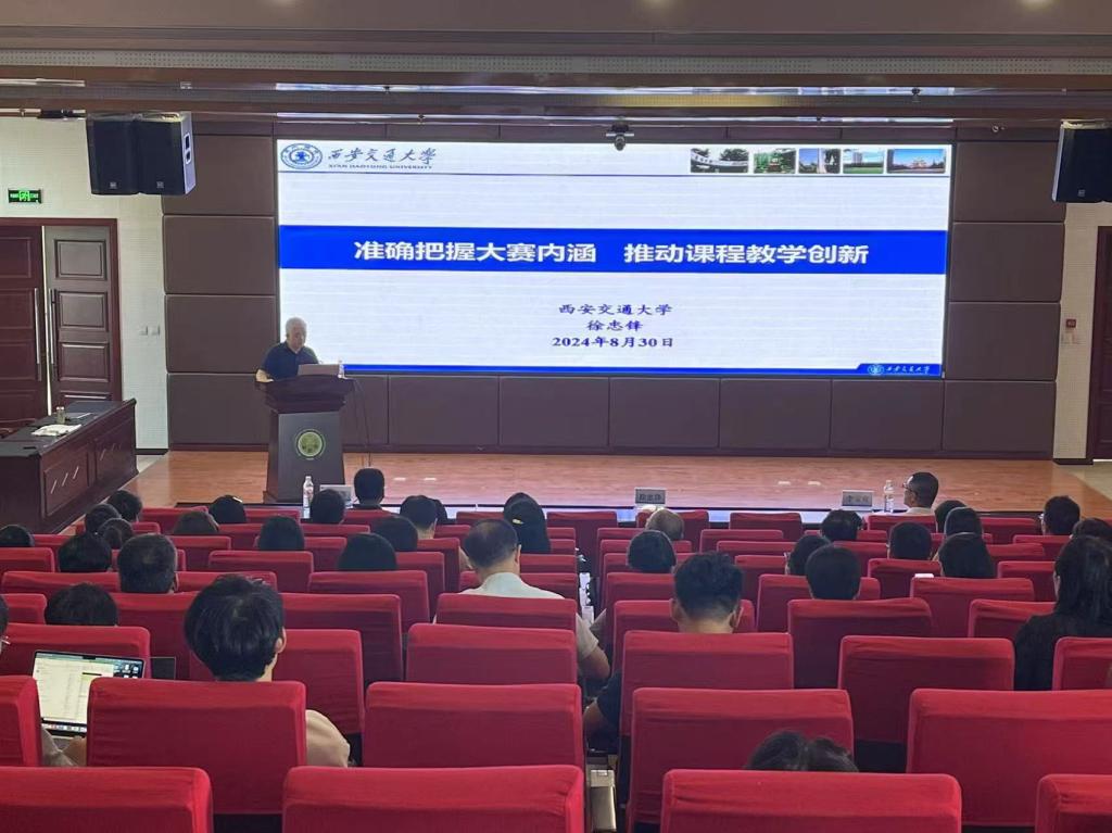 徐忠锋以“准确把握大赛内涵,推动课程教学创新”为题,从评委专家视角深刻剖析大赛文件和要求、教学创新成果报告、课堂教学实录视频和教学设计创新汇报中的关键要素和具体做法,为教师们厘清了参赛思路。同时,徐忠锋深入阐述人工智能对高等教育变革的影响,为老师明确了下一步教育教学方向。