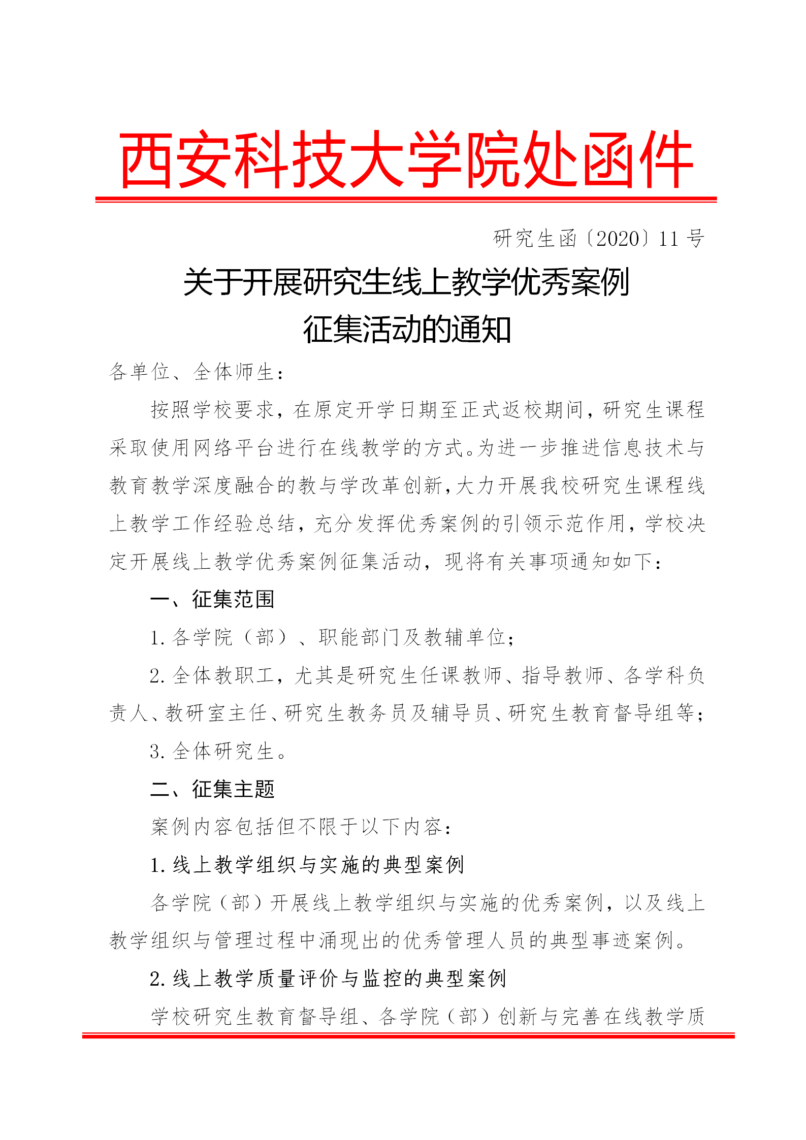 附件下载:关于开展研究生线上教学优秀案例征集活动的通知.doc